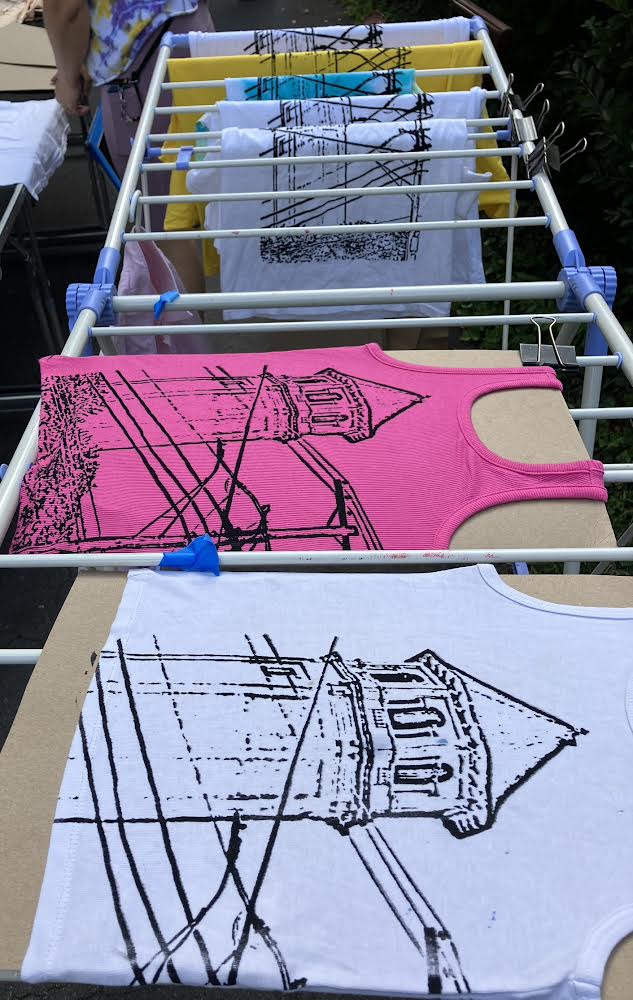 Kids’ songs! Ukuleles! Screen printing! Ukulele Friends & Stroller Strum (with neighbor Cindy Swiss) will play music on Saturday 9/9/23 from 3:00 to 3:30pm. Neighbor Lorraine Imwold will offer DIY screen printing with an image of the tower from 3:00 to 4:00pm. Bring your own shirt for screen printing ($10 suggested donation per shirt to benefit future events at the tower).