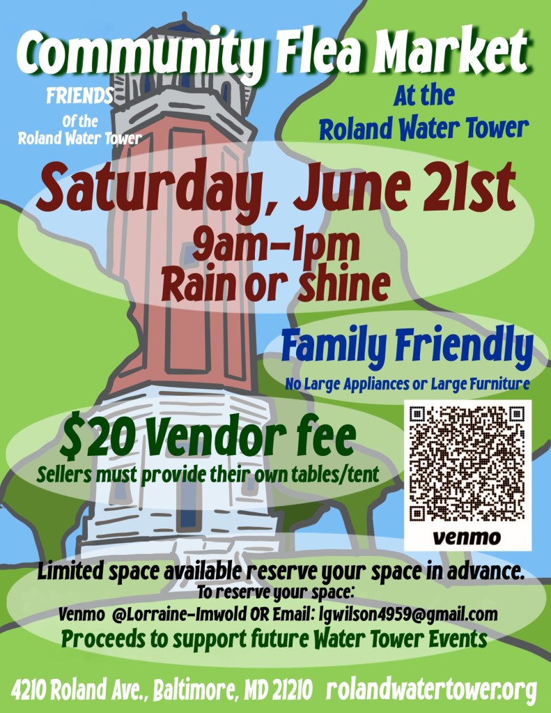 Want to sell? To sign up, send $20 to @Lorraine-Imwold on Venmo or email Lydia Wilson at lgwilson4959@gmail.com. $20 per vendor; please provide your own table/tent. Proceeds support future events at the water tower.