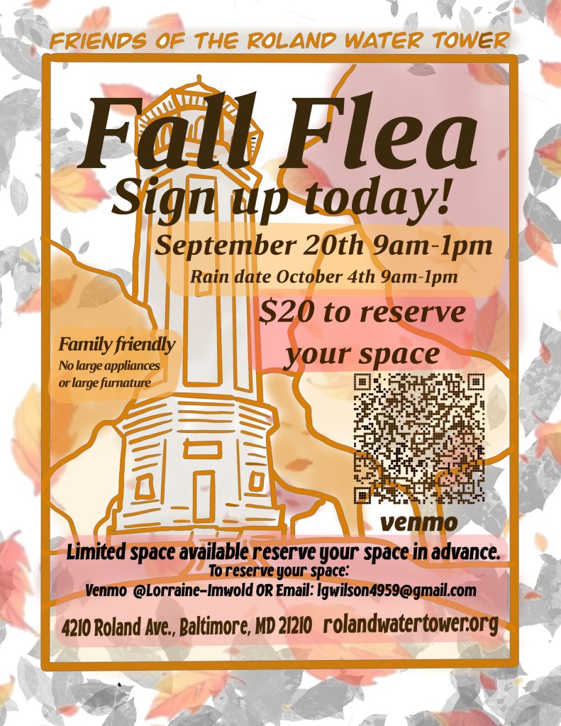 Back by popular demand: community flea market at the Roland Water Tower! Saturday, September 20, 2025, from 9am to 1pm. (Rain date: October 4.) Buy, sell, and chat with neighbors.