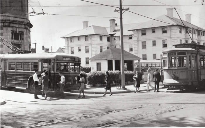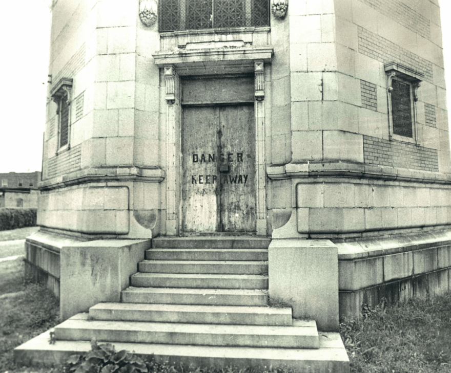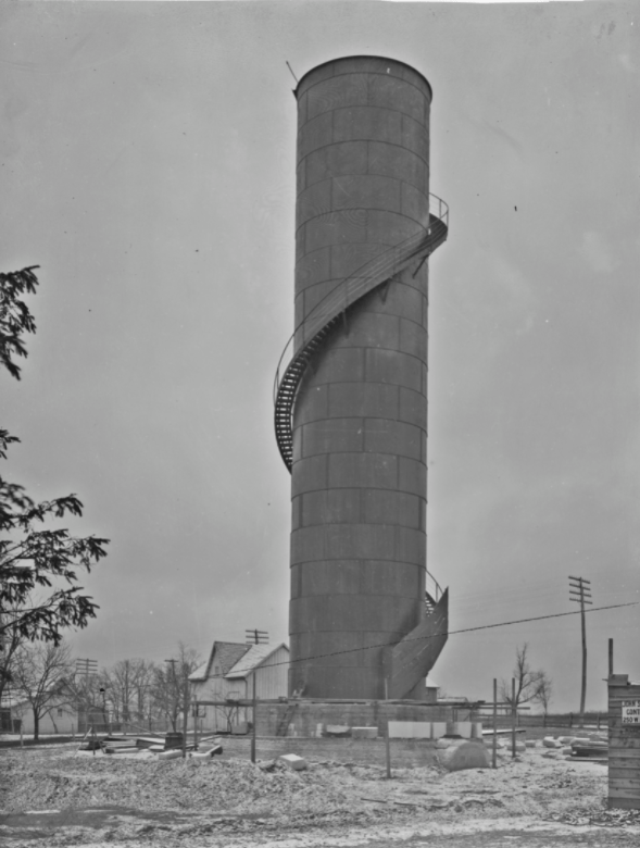 The historic tower was built in 1905 to provide water for Hampden. In 1930, the reservoir system replaced the need for water towers, and the tower became a turnaround spot for streetcars. In the 1960s, buses replaced streetcars. Through the decades, the tower and surrounding space fell into disrepair.